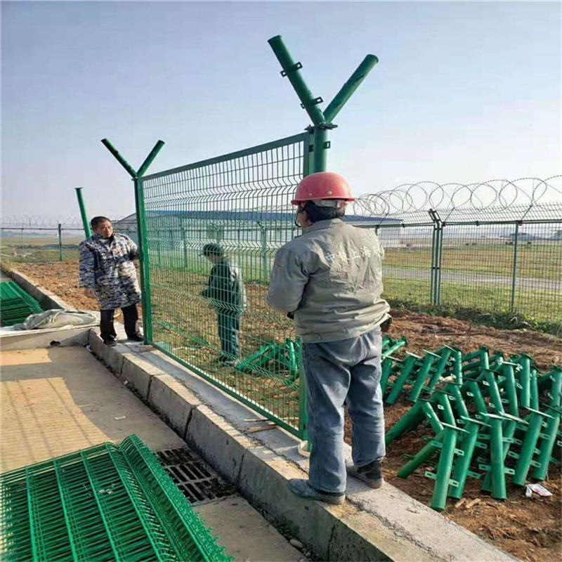 機(jī)場(chǎng)上使用的一類(lèi)護(hù)欄網(wǎng)并不為人們所熟知,它又稱(chēng)為“Y型安全防護(hù)網(wǎng)”、機(jī)場(chǎng)護(hù)欄網(wǎng)或機(jī)場(chǎng)圍界隔離網(wǎng),是由網(wǎng)片、V型支架立柱、焊接片網(wǎng)以及上面的刀片刺繩(又稱(chēng)刀片網(wǎng),刀片護(hù)欄)和安全防盜連接件組成,它的強(qiáng)度和安全防御性級(jí)別都很高。為了增加其防腐性能,適應(yīng)戶(hù)外暴露在空氣、雨水、太陽(yáng)直射下,護(hù)欄網(wǎng)表面采用了熱鍍加浸塑的表面處理方法,使用壽命可達(dá)十年。