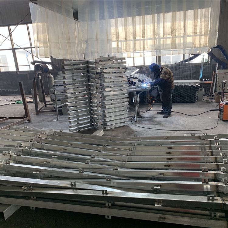 監(jiān)獄金屬隔離網(wǎng)立柱采用60*120矩形國際鋼管,管壁厚度3mm,高度為2500mm,立柱頂端應(yīng)進(jìn)行防水密封處理。Y型柱的V型托長度600*600mm,采用30*40*2mm的方管。立柱間距2500mm,網(wǎng)片寬度根據(jù)實(shí)際可用空間合理調(diào)整。立柱采用側(cè)裝底盤方式安裝,柱與網(wǎng)框之間用防盜螺絲貫穿式連接。
