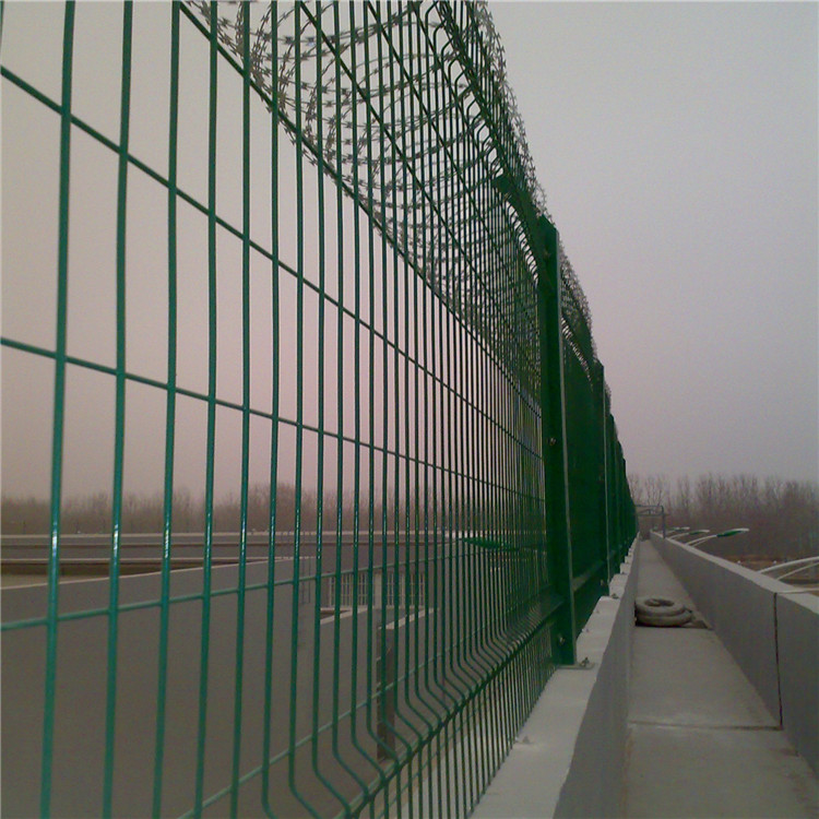 監(jiān)獄金屬隔離網墻又叫監(jiān)獄金屬隔離網、監(jiān)獄金屬鋼網墻、監(jiān)獄金屬防護網。監(jiān)獄金屬隔離網設計要求:監(jiān)獄金屬隔離網墻以3000mm長為一個制作、安裝金屬隔離網墻間距規(guī)格為3000mm(長)x4000mm(高)。每3000mm預埋螺栓(4個M16x300mm),其上安裝立柱一根立柱底端焊接法蘭盤,法蘭盤與混凝土基礎內的預埋螺栓(4個M16x300mm)固定連接。網墻單元設計為具有邊框的隔離網片,邊框與立柱之間