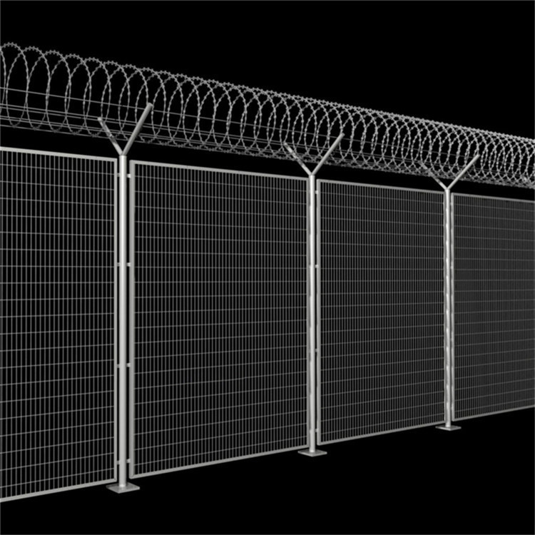 Y型架上邊架蛇腹型刀刺:由熱鍍鋅鋼板或不銹鋼薄板沖壓出尖利的刀片狀,高張力鍍鋅鋼絲或者不銹鋼絲做芯線組合而成的阻盡器材。刀刺直徑采取50-60厘米,刀型整潔、刀片鋒利、排列均勻致密、連接堅固、防腐才能強,可能達到防攀越、防拆卸*#高保險等級。