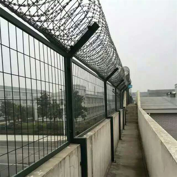 監(jiān)獄巡邏區(qū)鋼網(wǎng)墻、巡邏道隔離網(wǎng)、監(jiān)舍隔離網(wǎng)墻,艾瑞監(jiān)獄鋼網(wǎng)墻是一種防翻越、防破壞性能較強(qiáng)的防護(hù)網(wǎng),主體一般由網(wǎng)片、立柱和蛇腹式刀刺網(wǎng)三大部分組成。網(wǎng)片同城四周焊接邊框,以增加隔離網(wǎng)墻的防護(hù)強(qiáng)度,艾瑞監(jiān)獄鋼網(wǎng)墻的邊框和其他場地的邊框不同,網(wǎng)片中間必須加橫撐,以起到橫向支撐網(wǎng)子的作用。