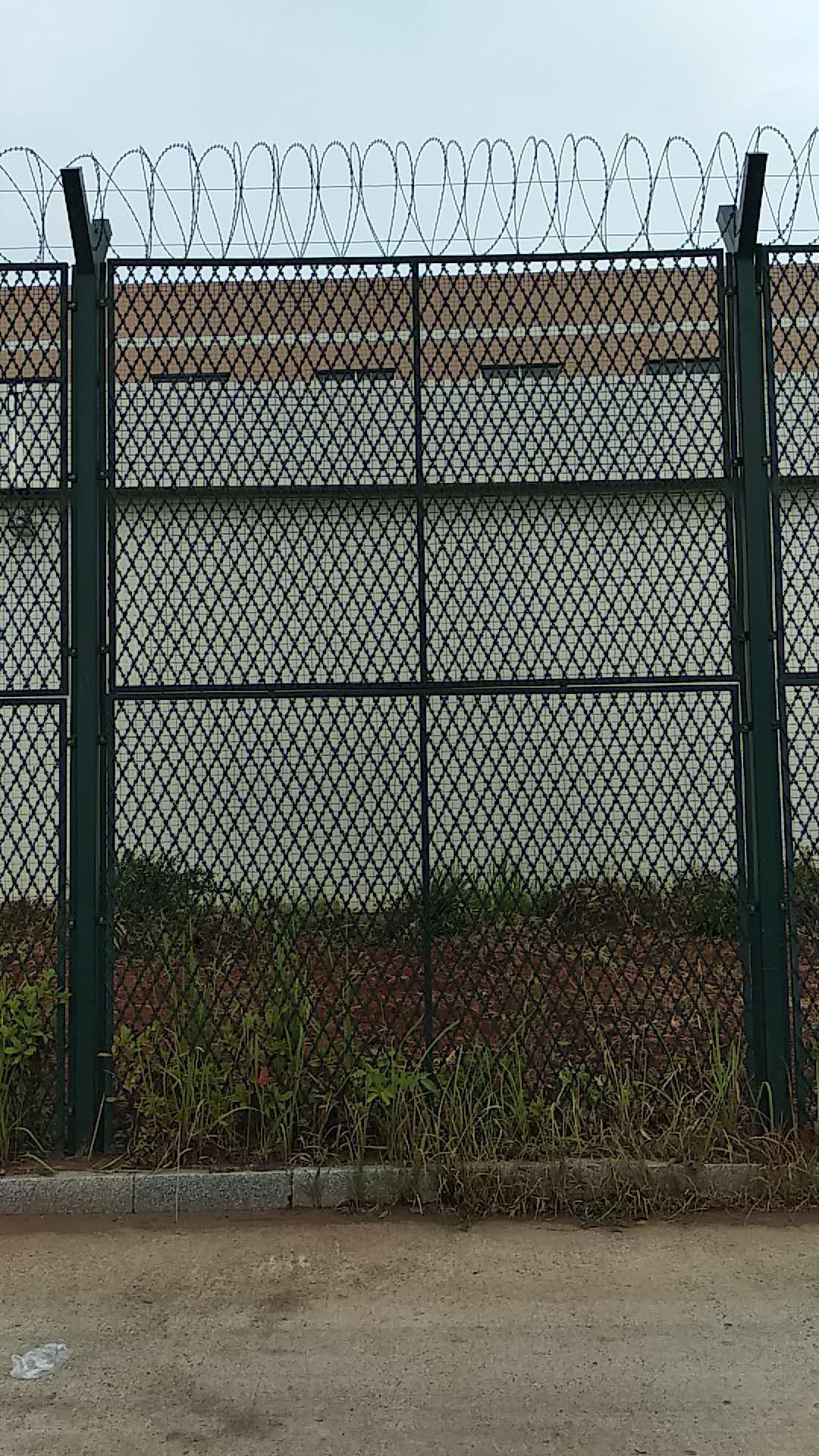 重罪犯生活區(qū)鋼網(wǎng)墻主體一般由網(wǎng)片、立柱和刀刺網(wǎng)三大部分組成。網(wǎng)片四周焊接邊框,以增加鋼網(wǎng)墻的防護強度,看守所鋼網(wǎng)墻的邊框和其它場地的邊框有所不同,網(wǎng)片中間可以加橫撐,以起到橫向支撐網(wǎng)子的作用,邊框左右兩側(cè)焊接連接網(wǎng)片,以便與兩側(cè)立柱連接。立柱焊接成Y字型,用以架設刀刺網(wǎng),與網(wǎng)片完美結(jié)合。比普通的金屬護欄網(wǎng)防護性能要高很多,這就要求在加工過程中選料、用料都要嚴格要求,一般網(wǎng)片采用Q235鋼材制作,絲徑不宜太細,要5mm絲及以上,防止認為破壞,所以稱鋼網(wǎng)墻,堅固結(jié)實、韌性大,硬度高形成一道難以逾越的鋼網(wǎng)墻。