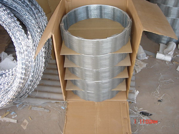 產(chǎn)品規(guī)格:芯絲:優(yōu)質(zhì)鋼絲。 刀 片:鍍鋅鋼板,不銹鋼?! 」?nbsp;藝:熱鍍鋅-沖壓。 型 號(hào):BTO-22,BTO-10,CBT-65,CBT-60?! √?nbsp;點(diǎn): 刀片刺網(wǎng)又名刮刀型刺絲,是一種近年發(fā)展起來(lái)的防護(hù)、隔離能力較強(qiáng)的新型防護(hù)網(wǎng)產(chǎn)品。它采用鋼板沖壓成型包附于鋼絲(筋絲)之上,由銳利尖角鍍鋅鋼板或不銹鋼薄板做刀片,高張力鋼絲做芯線組合而成的。鋒利的刀型刺由雙線扣裝后成蛇腹?fàn)睿让烙^又讓人不寒而栗。起到了很好的阻嚇作用。