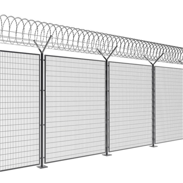 監(jiān)獄鋼網(wǎng)墻安全網(wǎng)又稱作“Y型安全防御護(hù)網(wǎng)”,是由V型支架立柱加強(qiáng)型焊接片網(wǎng),安全防盜連接件和熱鍍鋅刀片刺籠組成,強(qiáng)度和安全防御性級(jí)別很高。近年來被廣泛應(yīng)用在監(jiān)獄,軍事基地等高安全場(chǎng)所。注如果在監(jiān)獄護(hù)欄網(wǎng)頂部加裝刀片刺絲、刀片刺繩后又很好的增強(qiáng)了安全防護(hù)性能。采用電鍍、熱鍍、噴塑、浸塑等防腐形式,具有很好的kang老化、kang曬、nai候等特點(diǎn)。