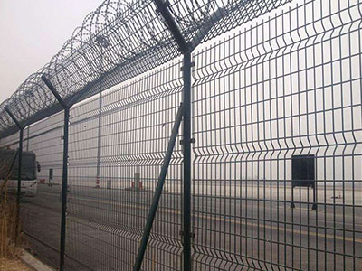機場護欄網又稱作“Y型安全防御護網”,是由V型支架立柱加強型焊接片網,安全防盜連接件和熱鍍鋅刀片刺網組成強度和安全防御性級別很高。被廣泛應用在機場,軍事基地等高安全場所。