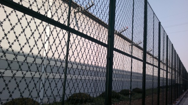 監(jiān)獄外4米高鋼網(wǎng)墻(4米高+0.5米蛇腹型刀刺網(wǎng))