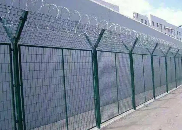 監(jiān)獄安全防護(hù)網(wǎng),監(jiān)獄隔離鋼網(wǎng)墻,是監(jiān)獄安全防護(hù)設(shè)施。監(jiān)區(qū)看守所戒毒所內(nèi)外4米高隔離網(wǎng)墻常用規(guī)格網(wǎng)墻,焊接鋼網(wǎng)加蛇腹形刀刺網(wǎng),結(jié)構(gòu)新穎、堅(jiān)固緊密、網(wǎng)面平整、網(wǎng)孔均勻、刀鋒說利、防攀爬、太腐蝕性強(qiáng),可以建設(shè)于監(jiān)獄的內(nèi)外墻地面及高墻之上,網(wǎng)墻內(nèi)側(cè)或頂部加裝蛇腹形刀刺網(wǎng),形成一道高不可攀難以逾越的隔離障礙,達(dá)到恐嚇,防止犯人越猶逃跑的作用。煤接式刀片刺網(wǎng)隔離網(wǎng)墻,刀片采用熱鍍鋅合金鋼薄板,鋼絲采用80A熱鍍鋅鋼絲,經(jīng)過機(jī)器沖壓、數(shù)控高頻排悍而成。菱形網(wǎng)孔:150300 mm或75-150 mm。網(wǎng)片邊框:20-30-1.5 mm矩形鋼管中間加一道橫向加強(qiáng)中撐。Y形立柱: 50*50*2.5 mm或60*60*2.5 mm方空心鋼管。立柱高度4050 mm。網(wǎng)片高度:2000 mm,上下兩片,網(wǎng)片寬度3000 mm,上面一道蛇腹型刀刺網(wǎng)。監(jiān)獄安全防護(hù)網(wǎng)-監(jiān)獄隔離鋼網(wǎng)墻總高度達(dá)到2500 mm。特珠規(guī)格型號(hào)可根據(jù)用戶需求定做。