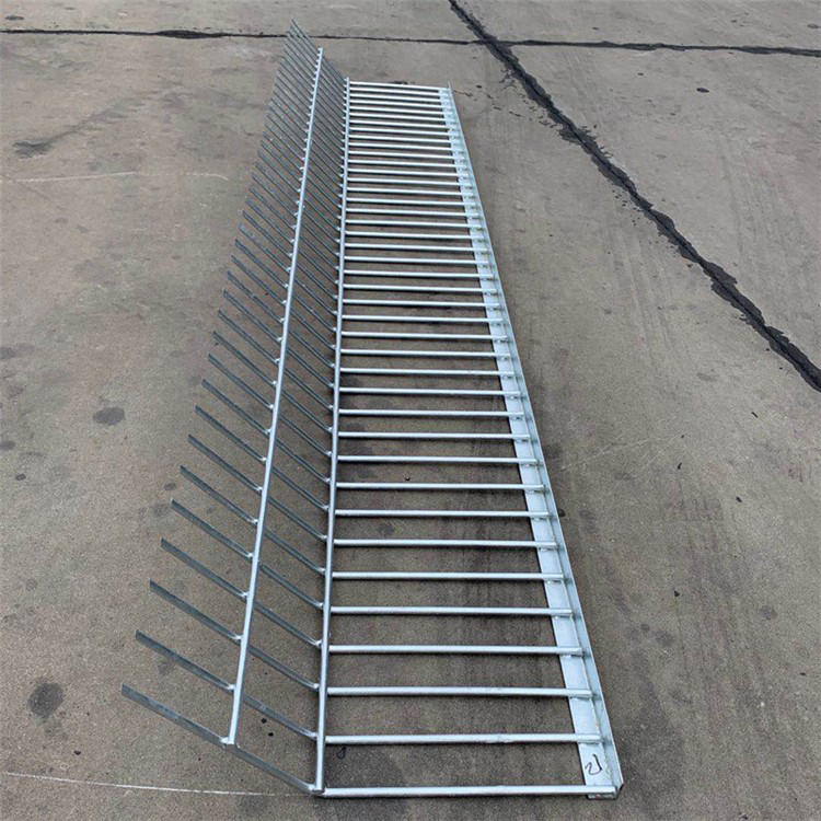 (1)防爬倒刺采用鍍鋅φ12圓鋼制作。豎向倒刺鋼筋焊接在角鋼內(nèi)側(cè)上。