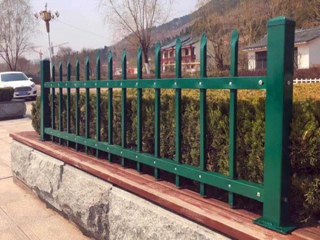 草坪防護柵欄、園林花池圍欄、鋅鋼草坪護欄立柱與護欄片之間,用U型連接件搭配鏈接螺絲安裝和固定。