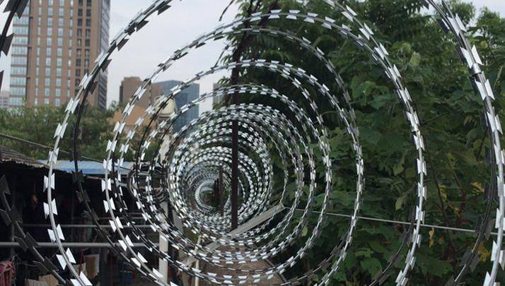 鍍鋅刀片刺網(wǎng)由熱鍍鋅鋼板或不銹鋼薄板沖壓出尖銳的刀片狀,高張力鍍鋅鋼絲或者不銹鋼絲做芯線組合而成的阻絕器材。鍍鋅刀片刺網(wǎng)造形獨特不易觸摸,因而能達到極好的防護隔離效果。產(chǎn)品的主要材質(zhì)有鍍鋅板和不銹鋼板。
