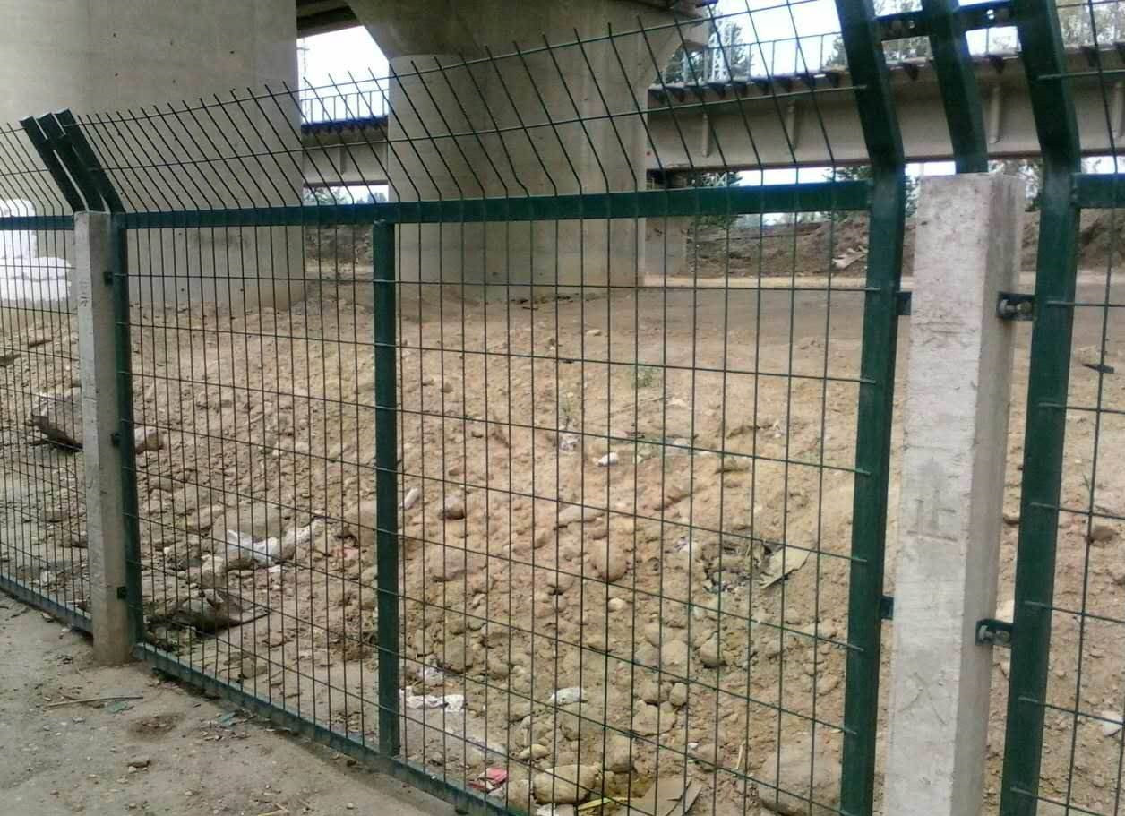 鋼筋混凝土立柱金屬網(wǎng)片防護(hù)柵欄由:鋼筋混凝土立柱、金屬網(wǎng)片及連接部件組成,防護(hù)高度1.8m。