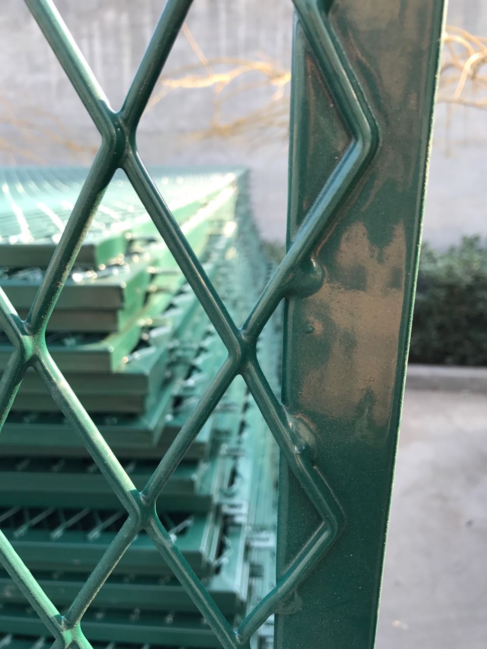 看守所圍網(wǎng)又稱作安全防御護(hù)網(wǎng),是由安全立柱(頂部可帶V型),加強(qiáng)型焊接片網(wǎng),安全防盜連接件和刀片刺籠組成,強(qiáng)度和安全防御級(jí)別很高。近年來(lái),被廣泛應(yīng)用在監(jiān)獄,看守所,軍事基地等高安全場(chǎng)所。表面采用電鍍、熱鍍、噴塑、浸塑等防腐形式,具有很好的***老化、***曬、***候等特點(diǎn)。這種看守所安全圍網(wǎng)造型美觀、花色多樣,既起到圍欄作用,又起到美化作用。由于具有安全性高、防攀爬能力好,網(wǎng)片連接方式采用特制SBS緊扣件,有效防止人為的破壞性拆卸,橫向四道折彎加強(qiáng)筋或四周焊接方管邊框,使網(wǎng)面強(qiáng)度顯著增加。