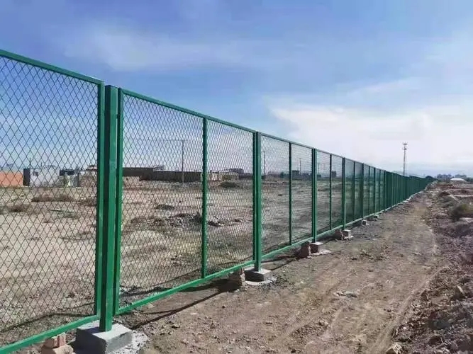 在固定好柱子之后,可以開始安裝工地防護柵欄的網(wǎng)片。首先將一側的網(wǎng)片按照需要的長度進行切割,然后將網(wǎng)片放置到柱子上,用扣鉤連接網(wǎng)片和柱子,并對網(wǎng)片進行拉緊,確保網(wǎng)片與地面垂直。