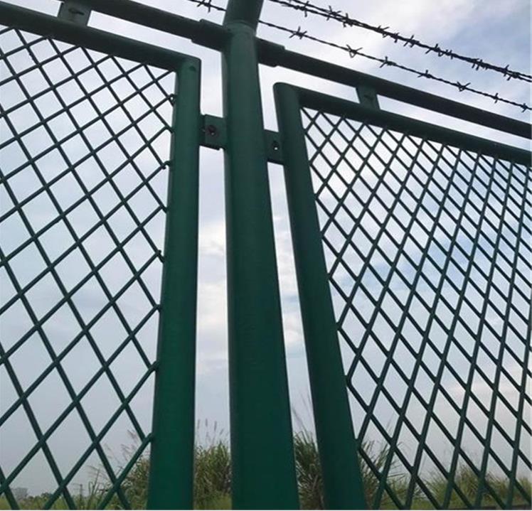 鋼板網(wǎng)圍墻產(chǎn)品選用菱形鋼板網(wǎng)做為圍墻防護(hù)網(wǎng)面,其鋼板網(wǎng)長(zhǎng)節(jié)距100mm,短節(jié)距50mm,鋼板網(wǎng)絲梗厚度4.0mm,此規(guī)格鋼板網(wǎng)抗拉強(qiáng)度大,抗沖擊性強(qiáng),網(wǎng)面堅(jiān)固,不易變形,菱形網(wǎng)孔不利于攀越。邊框根據(jù)防抗沖擊力選用不同厚度的方管或圓管,立柱根據(jù)鋼板網(wǎng)圍墻的高先用不同厚度的方管或圓管。菱形鋼板網(wǎng)和邊框通過熔化極氣體保護(hù)焊焊接在一起,邊框和立柱對(duì)稱焊接三至六個(gè)螺栓板,采用內(nèi)梅花防盜螺栓連接在一起。用途:主要用于重工業(yè)區(qū)圍墻,水庫圍墻,海邊圍墻,化工廠圍墻等空氣污染和腐蝕性強(qiáng)的區(qū)域圍墻