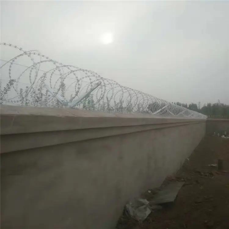 1、刀刺網(wǎng)立柱間距3m,邊框與立柱采用螺栓固定邊耳式連接,邊耳均為40mm*40mm*6mm扁鐵,邊耳螺孔可調(diào),調(diào)節(jié)距離不小于15mm;邊耳固定螺栓為直徑14mm*50mm全絲熱鍍鋅安全螺栓、螺母,每片網(wǎng)單邊連接點(diǎn)為6個(gè)以上。刀刺網(wǎng)設(shè)計(jì)要求整體連貫一致,框網(wǎng)方正,對(duì)角線(xiàn)誤差不大于2cm。