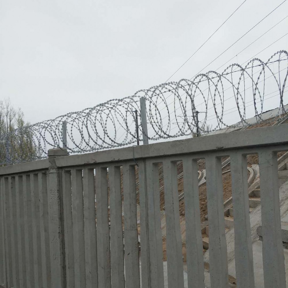 鐵路沿線防護(hù)柵欄主要應(yīng)用于鐵路、高鐵兩旁防護(hù)。新建鐵路時(shí)速200公里以上鐵路,用2.2米高鋼筋混凝土防護(hù)柵欄加0.5米刺絲滾籠。時(shí)速200公里以下的鐵路,用1.8米高鋼筋混凝土防護(hù)柵欄加0.5米刺絲滾籠。