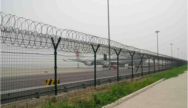 2、隔離網(wǎng)立柱間距3m,邊框與立柱采用螺栓固定邊耳式連接,邊耳均為40m* 40mmr*6m扁鐵,邊耳螺孔可調(diào),調(diào)節(jié)距離不小于15mm;邊耳固定螺栓為直徑14mm*50m全絲熱鍍鋅安全螺栓、螺母,每片網(wǎng)單邊連接點為6個以上。機場隔離護(hù)欄網(wǎng)設(shè)計要求整體連貫一致,框網(wǎng)方正,對角線誤差不大于2cm。