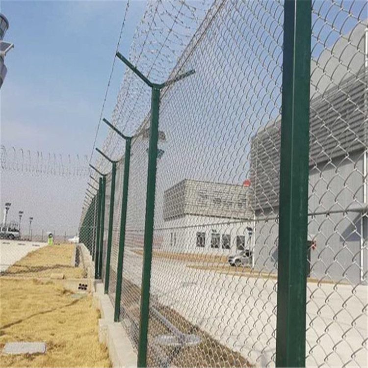 鋁包鋼絲網(wǎng)圍界的特點(diǎn)和應(yīng)用:由鋁包鋼絲編織而成,這種鋼絲是在鋼鐵材料上包一層鋁的復(fù)合制品,即圓鋼絲表面包裹一層鋁。通常采用勾花網(wǎng)結(jié)構(gòu),主要用于機(jī)場外圍的防護(hù)隔離,是護(hù)欄網(wǎng)的一種,又叫鋁包鋼機(jī)場圍欄。