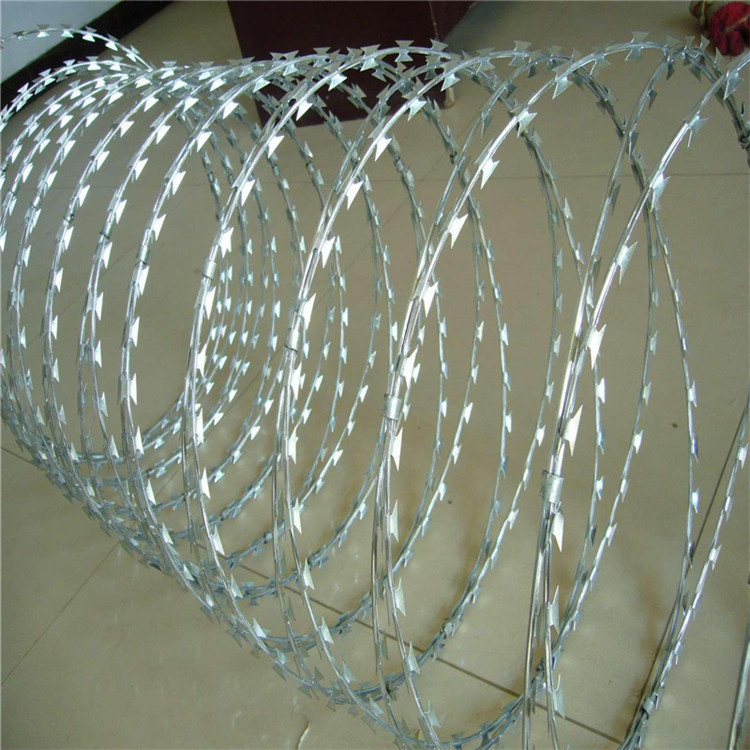 蛇腹形刀刺網(wǎng)施工主要包括以下內容:清理場地確認硬化程度可直接安裝支架底盤、安裝支架、拉線布置、蛇腹形刀刺網(wǎng)安裝。