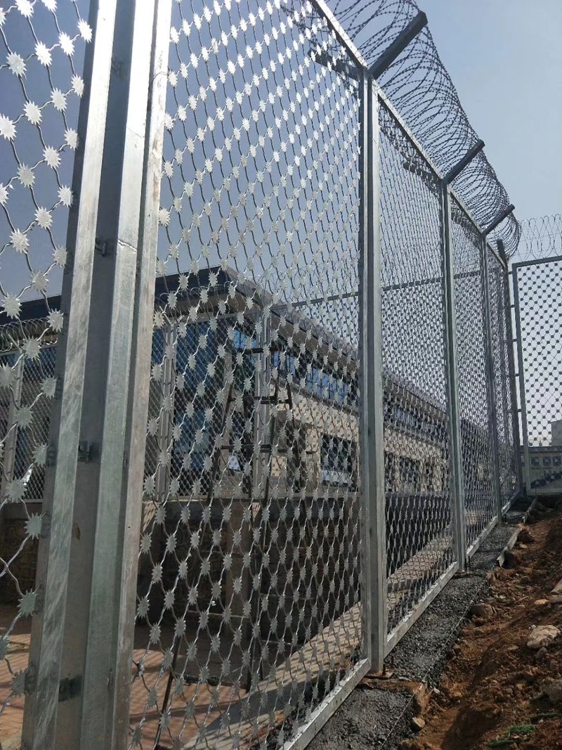 以上就是小編跟大家分享的關(guān)于監(jiān)獄看守所梅花刺鋼網(wǎng)墻安裝指導(dǎo),你還有其它想知道的嗎?本公司生產(chǎn)護(hù)欄網(wǎng)產(chǎn)品主要應(yīng)用于監(jiān)獄、機(jī)場(chǎng)、公路、鐵路、橋梁、廠區(qū)、電廠、市政、海關(guān)保稅區(qū)、養(yǎng)殖種植基地、學(xué)校等相關(guān)領(lǐng)域,公司擁有完善的科學(xué)的管理體系和技術(shù)力量雄厚的專業(yè)團(tuán)隊(duì),各種型號(hào)和規(guī)格都可以定制歡迎朋友們前來詢哦!